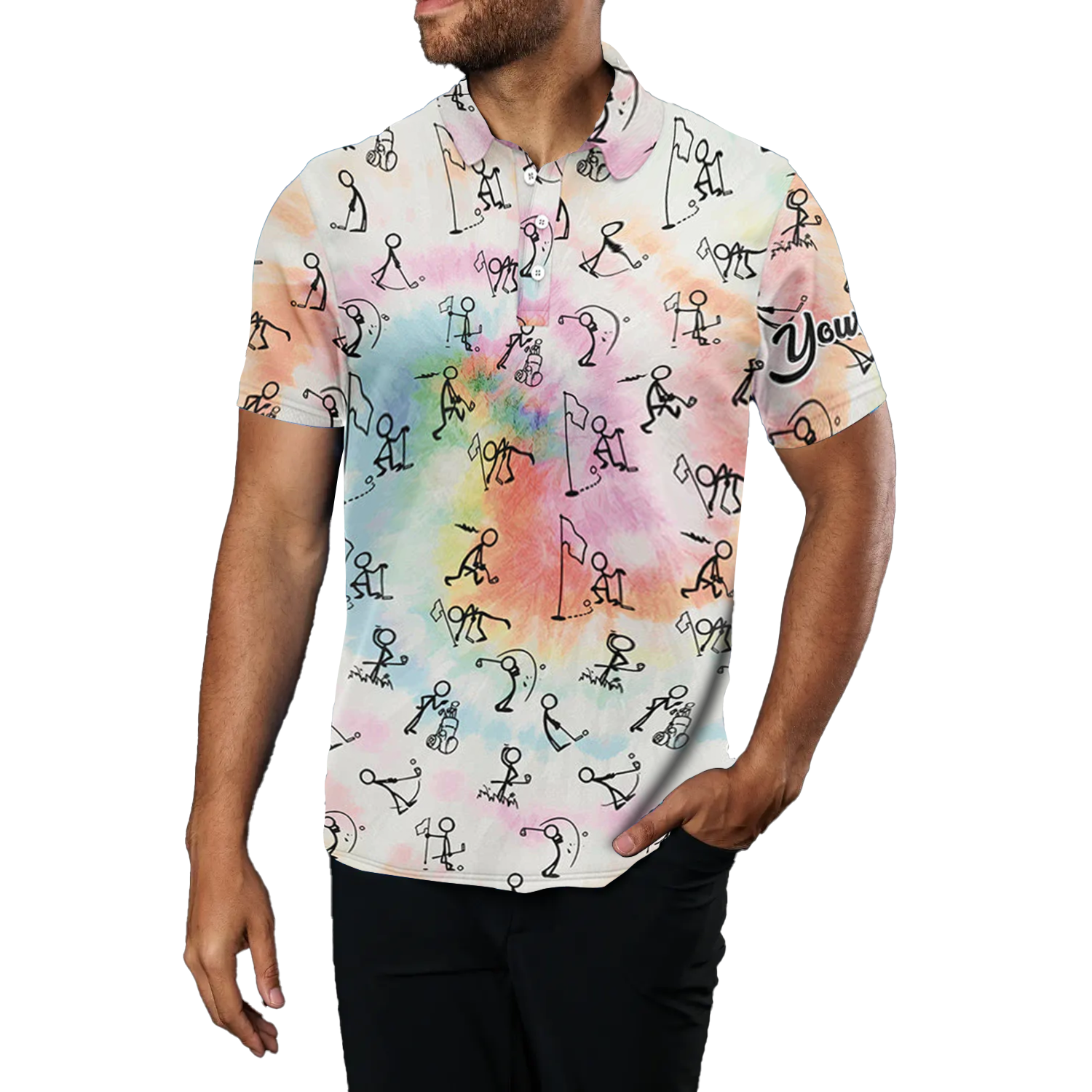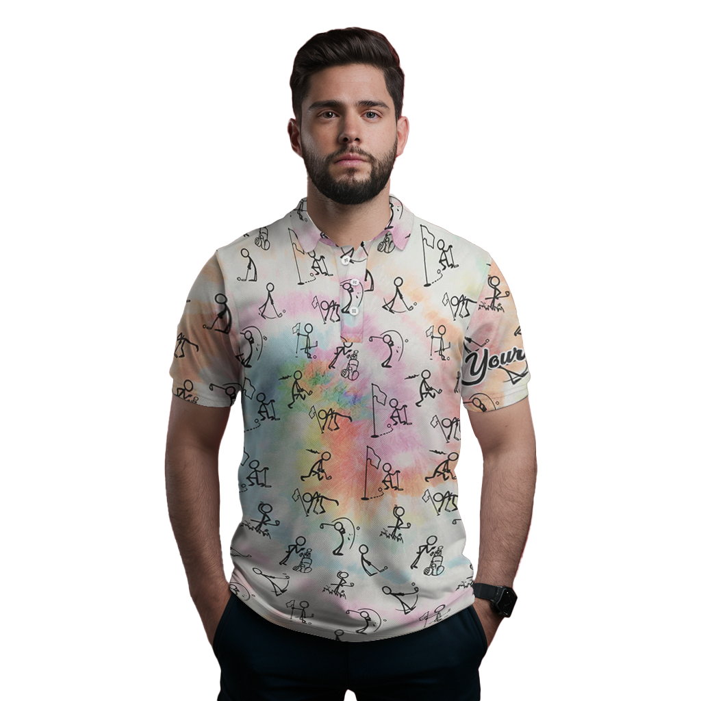 Regenbogen-Farbenfrohes Golf-Polo-Shirt für Herren mit bunten Figuren - Individuelles Golfgeschenk L1045