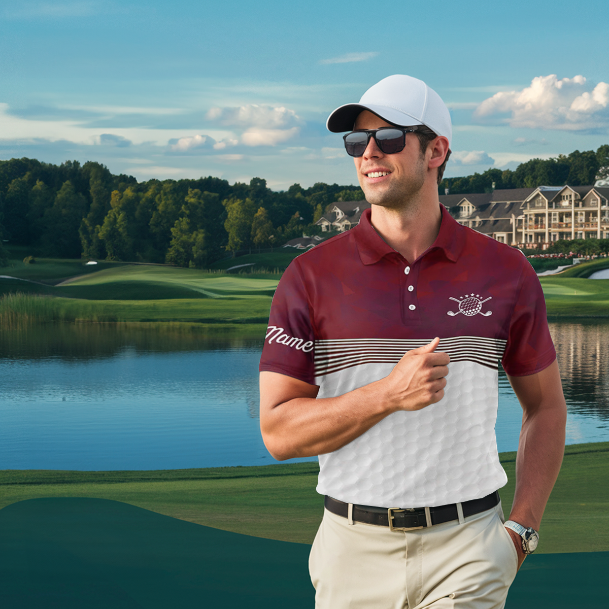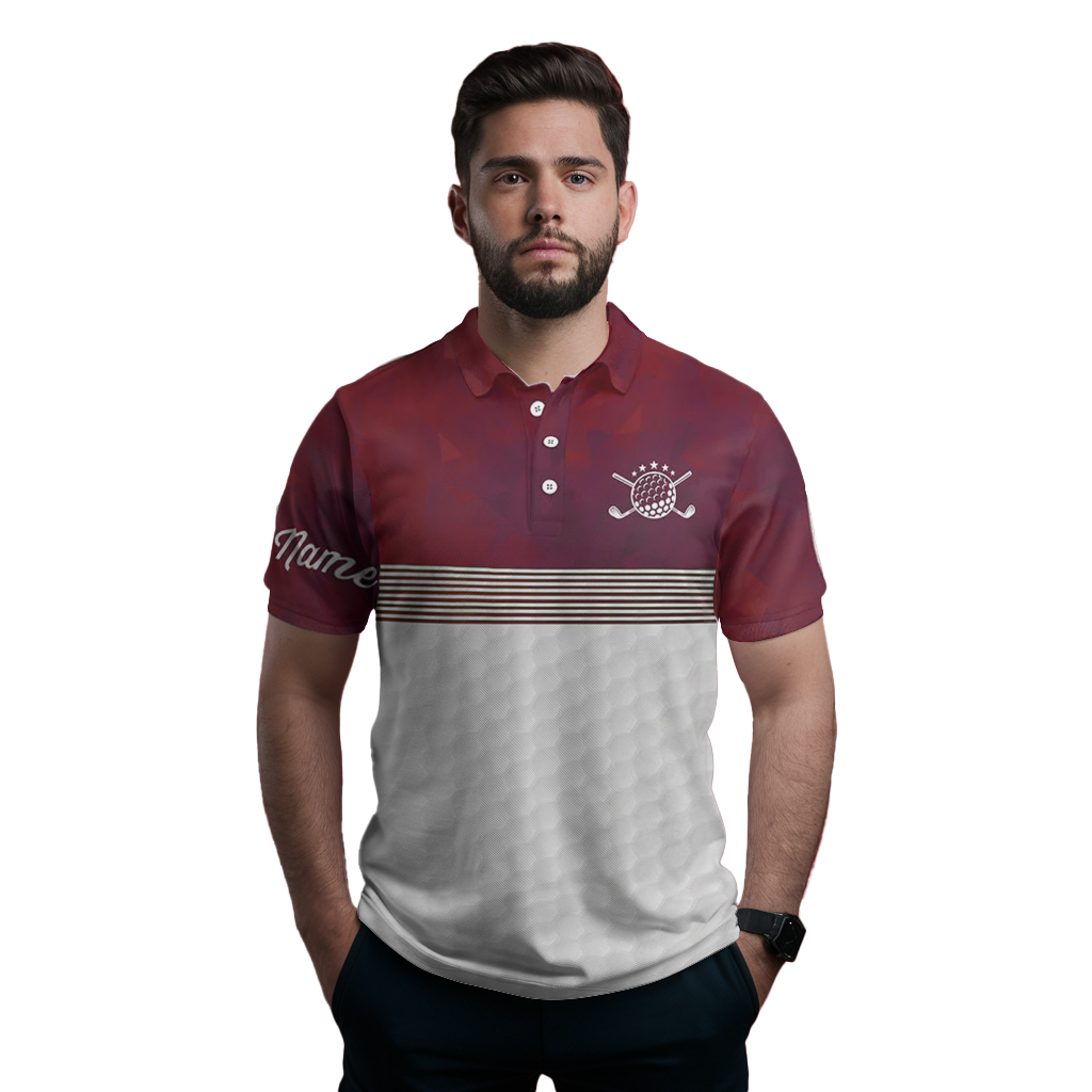 Personalisierbares Herren Golf Polo-Shirt in Rot und Weiß mit Namen N6450