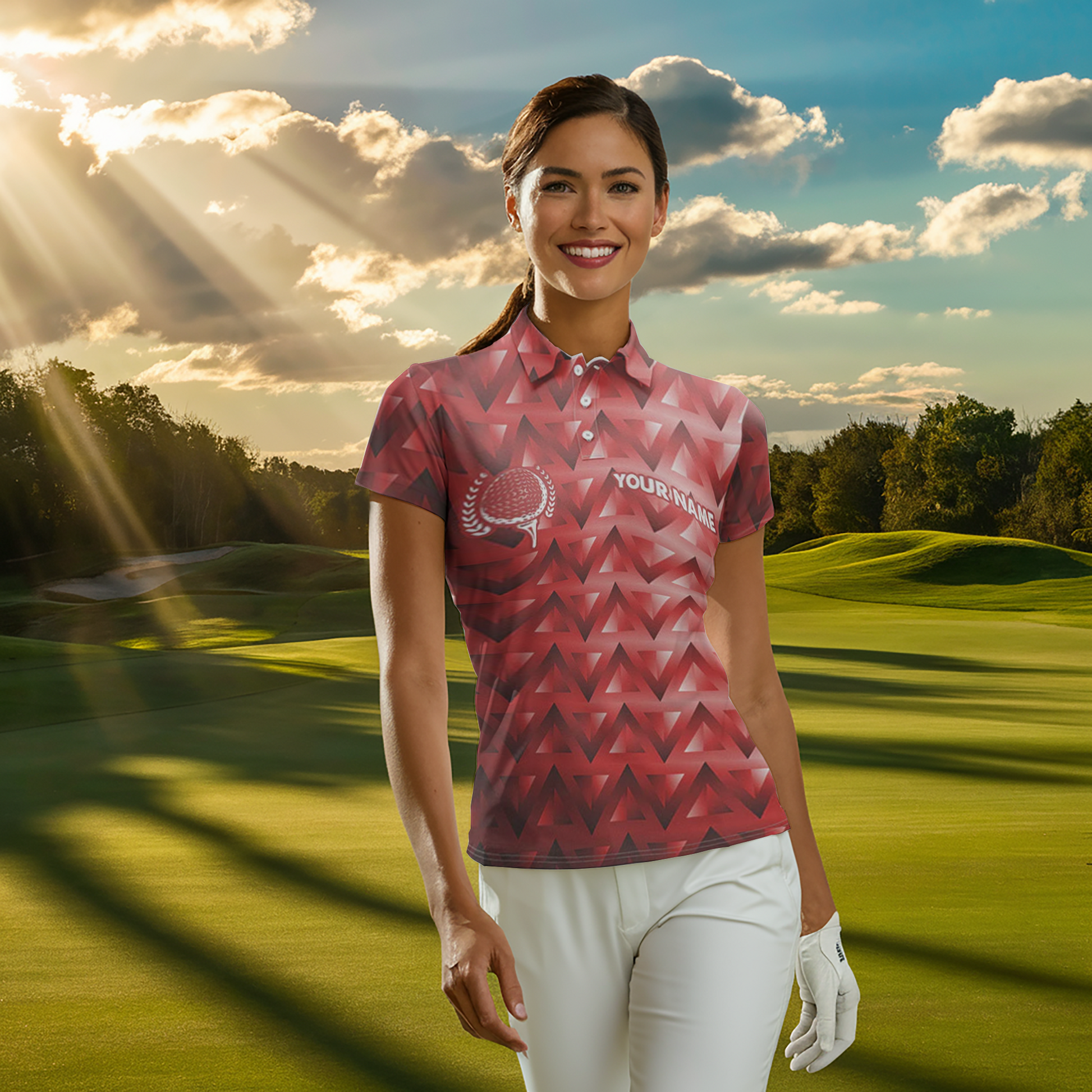 Rotes Dreieckmuster Damen Golf Poloshirt – Personalisierte Golfoberteile für Frauen, Perfekte Golfgeschenke N7510