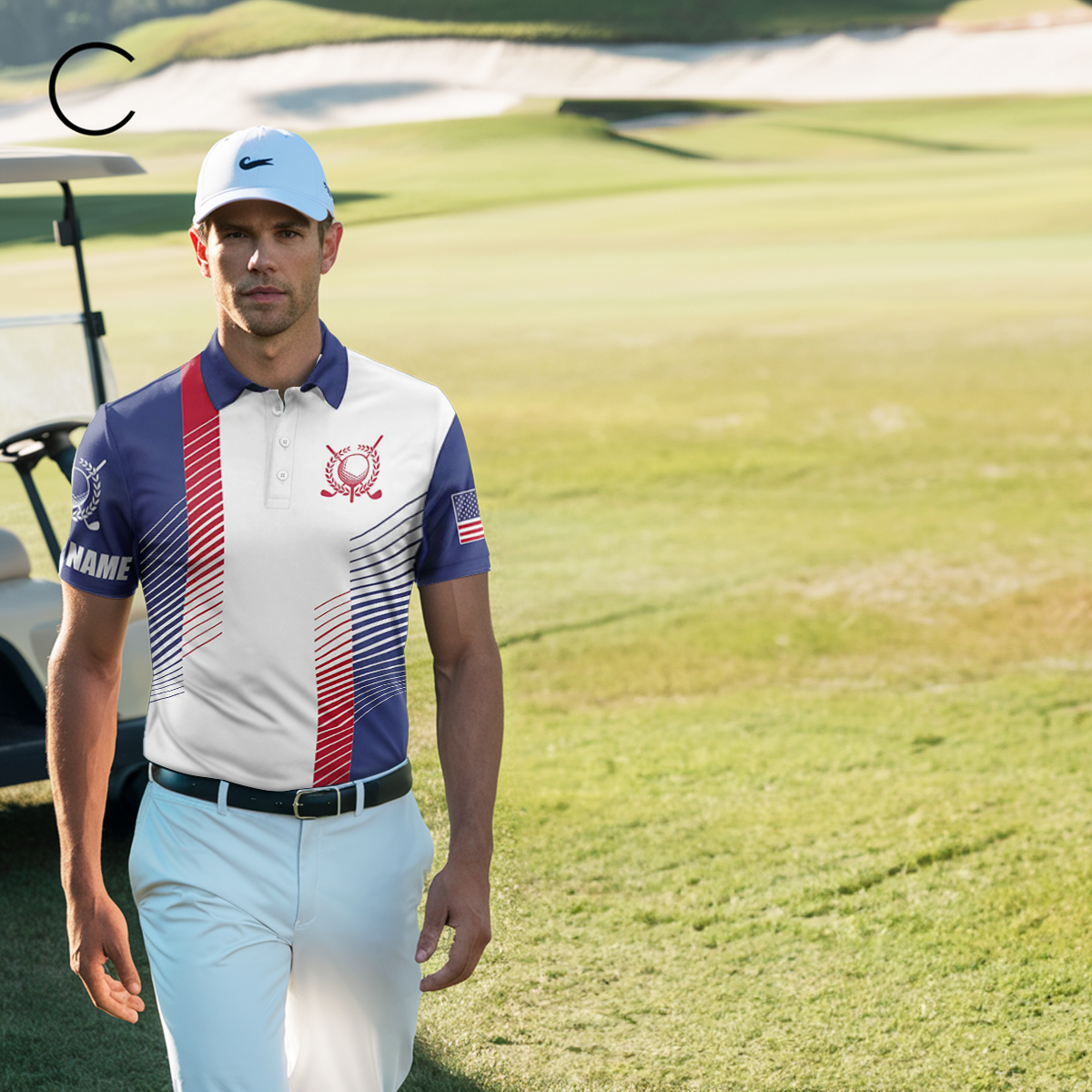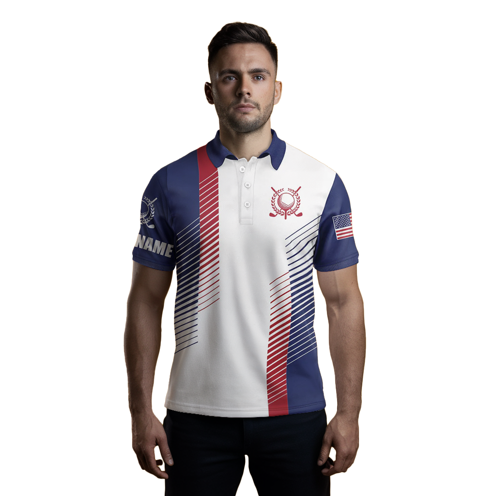 Personalisierte Herren-Golfpolos in Rot, Weiß und Blau – Patriotische Golfshirts für Männer N5507