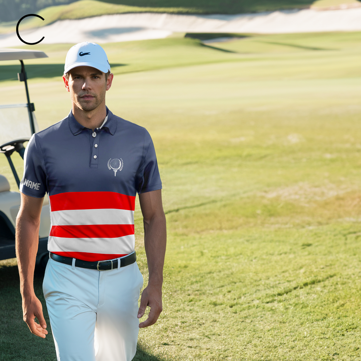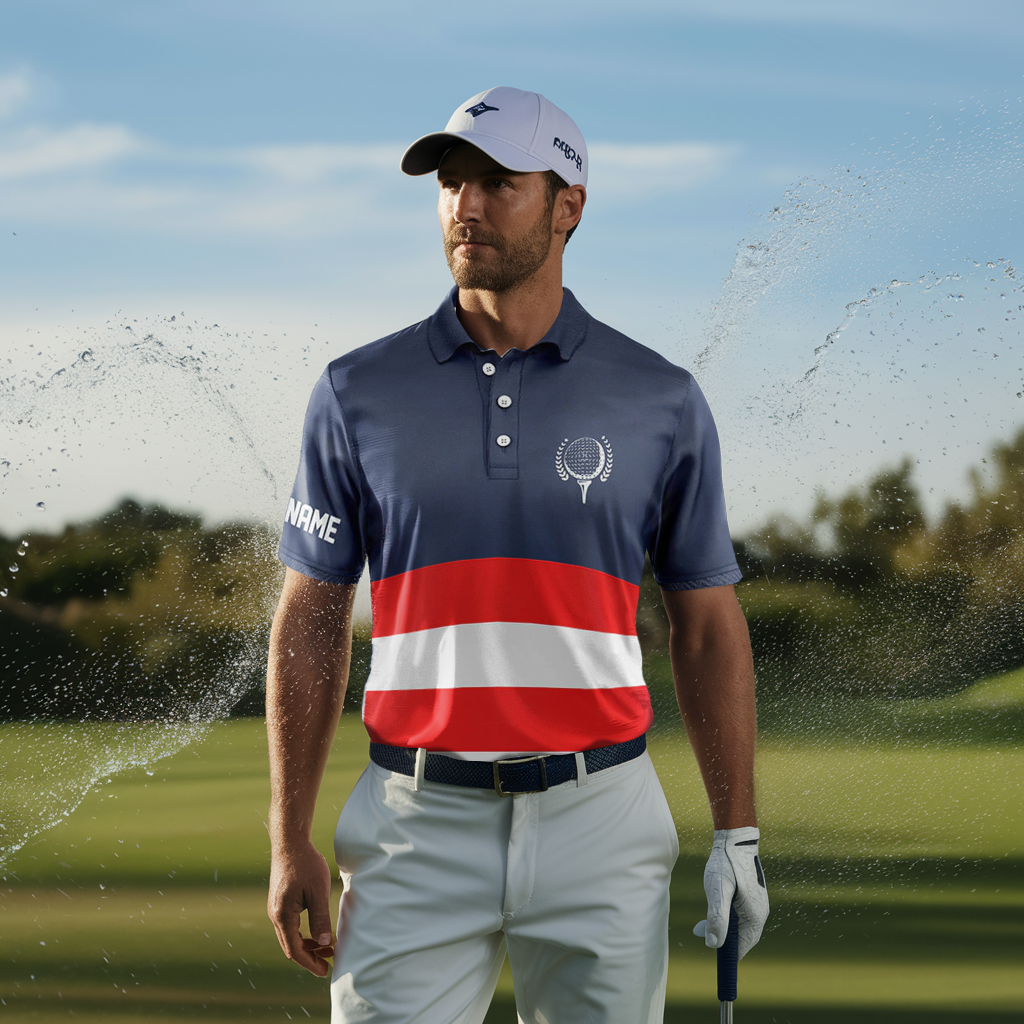 Personalisierte Herren Golfpoloshirts in Rot, Weiß und Blau - Patriotische Golfbekleidung für Männer N7135