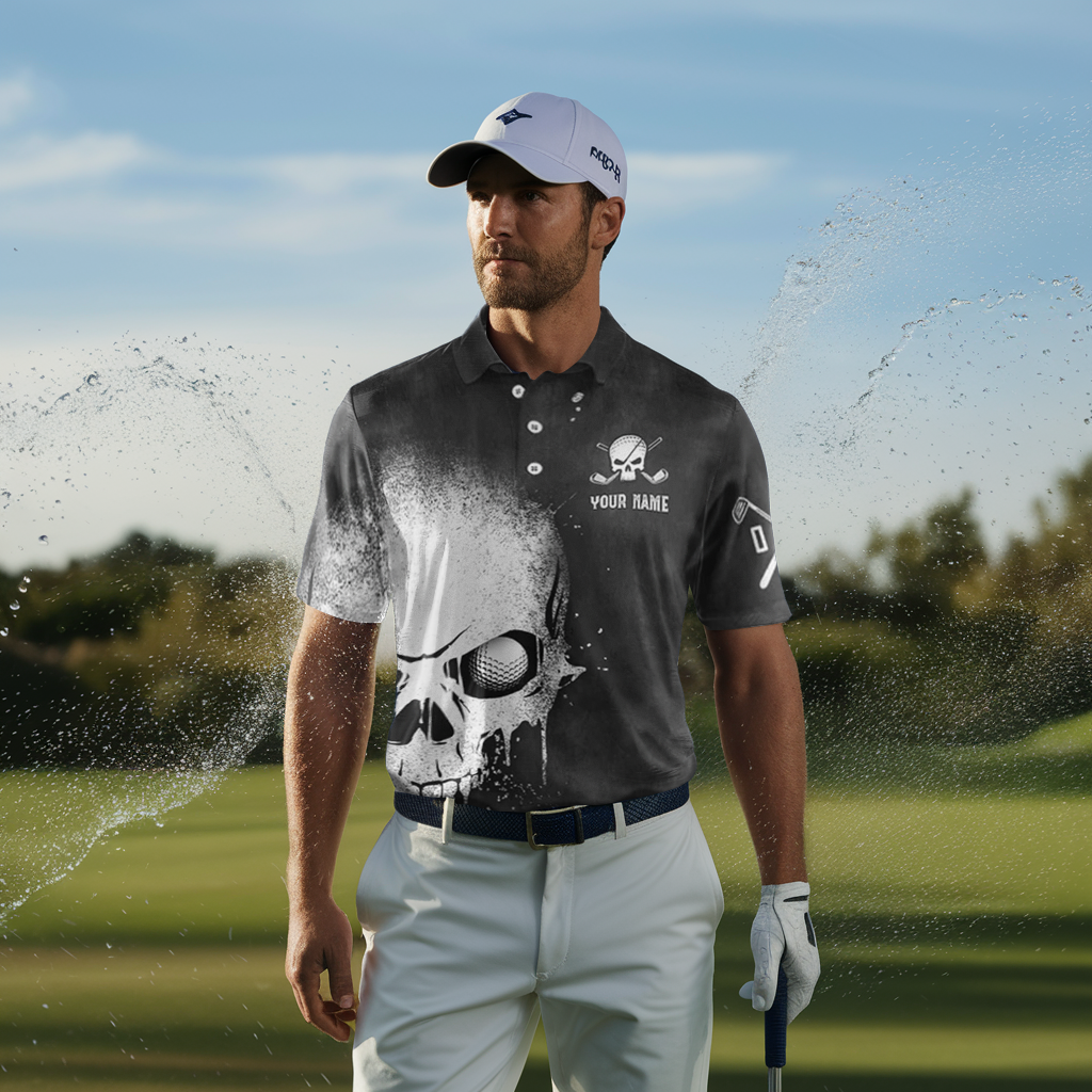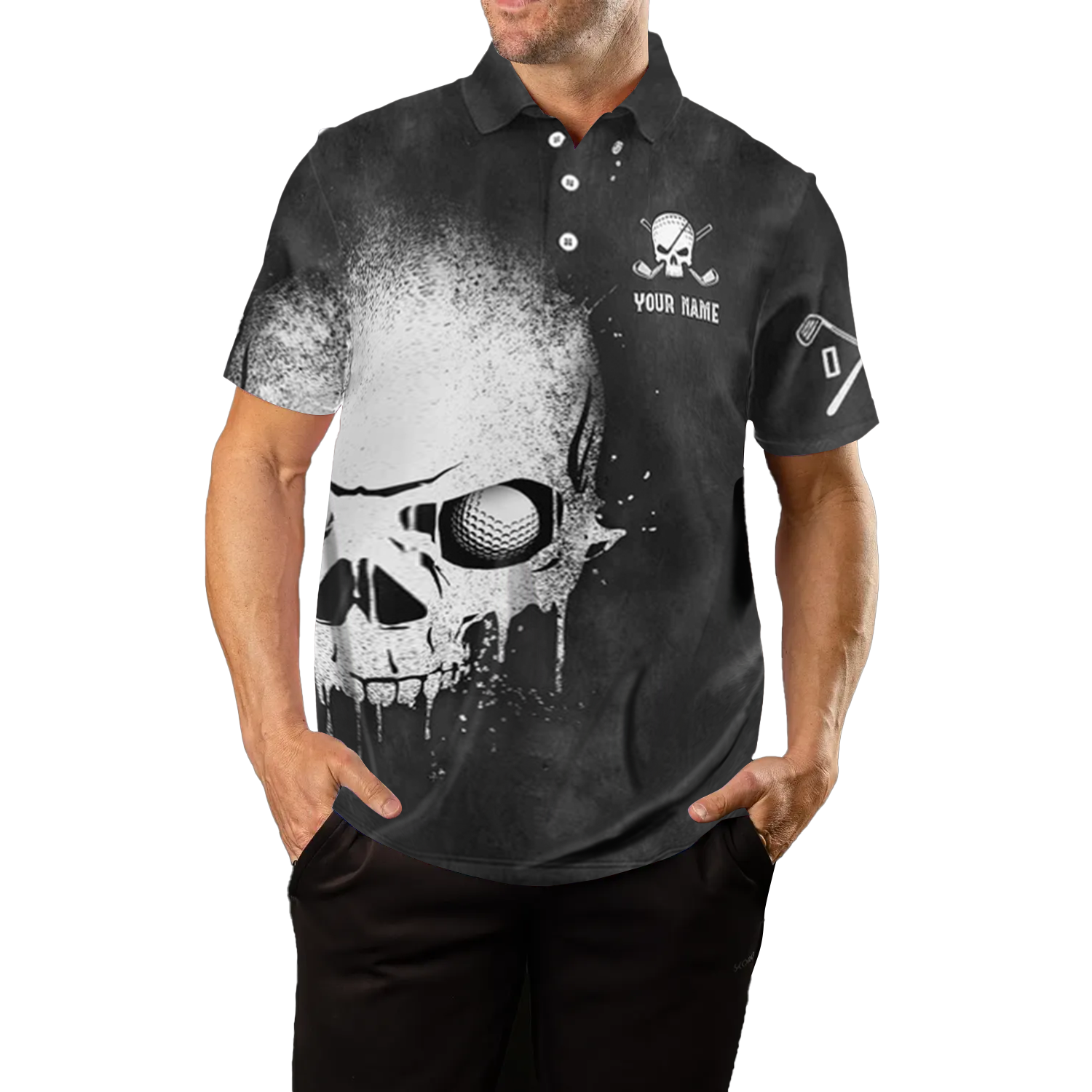 Individuelles Golf Polo-Shirt für Herren - Schwarz-Weißes Totenkopf-Design - Einzigartiges Golfgeschenk L1407