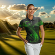 Schwarzes Golf-Polo für Damen mit Kleeblatt-Design - Perfekte Golfgeschenke zum St. Patrick's Day L1018