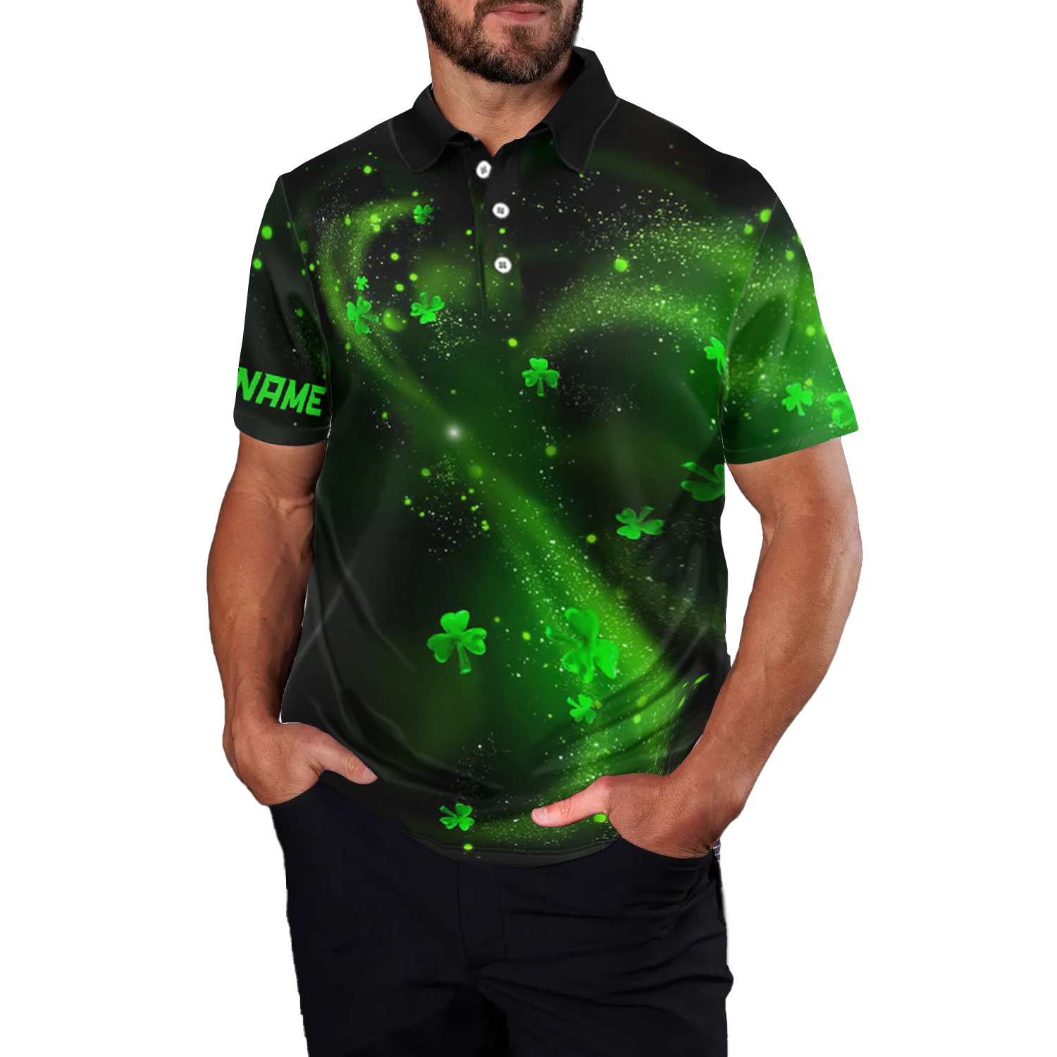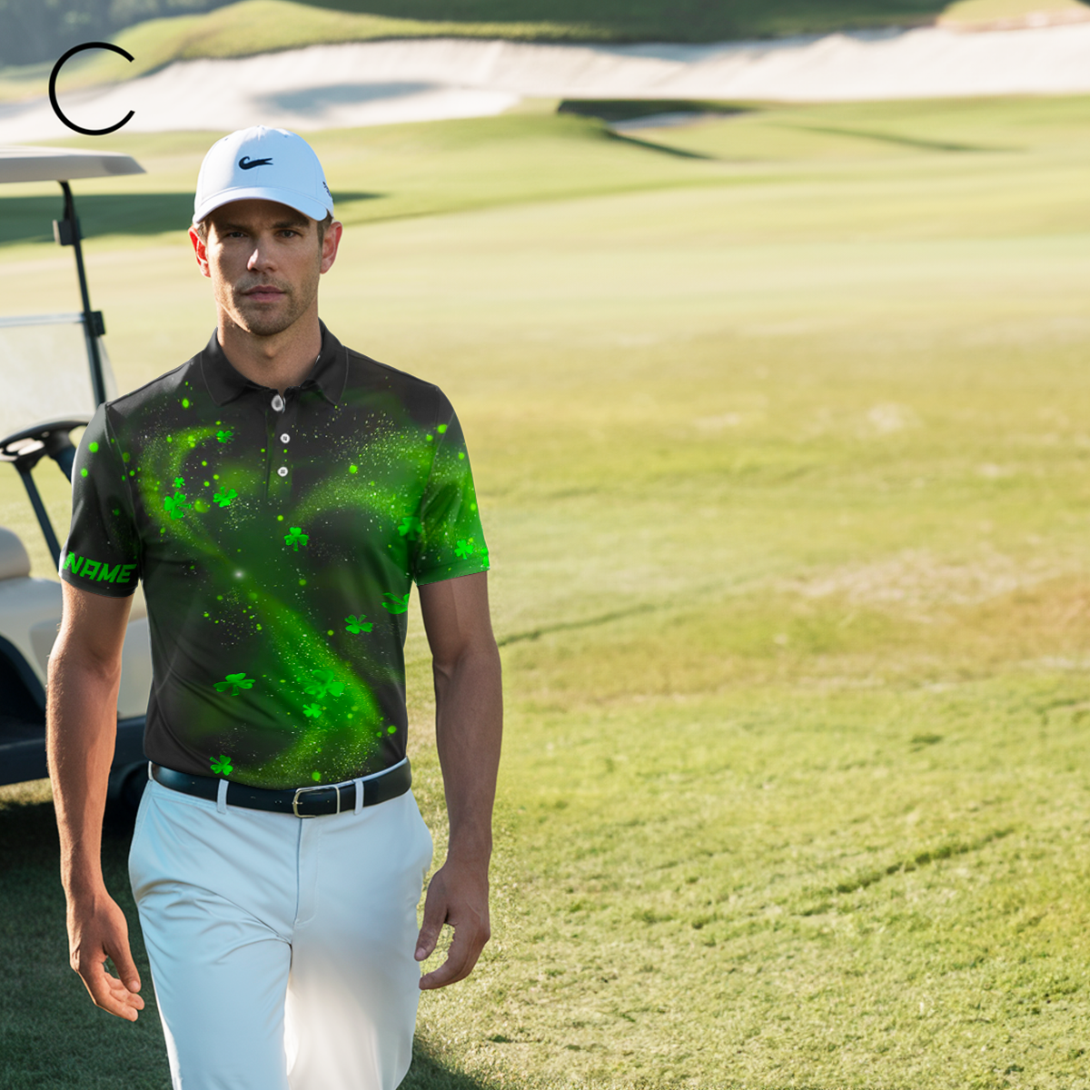 Schwarzes Golf-Polo-Shirt für Herren mit grünen Kleeblättern - Perfektes Geschenk für Golfer zu St. Patrick's Day L1018