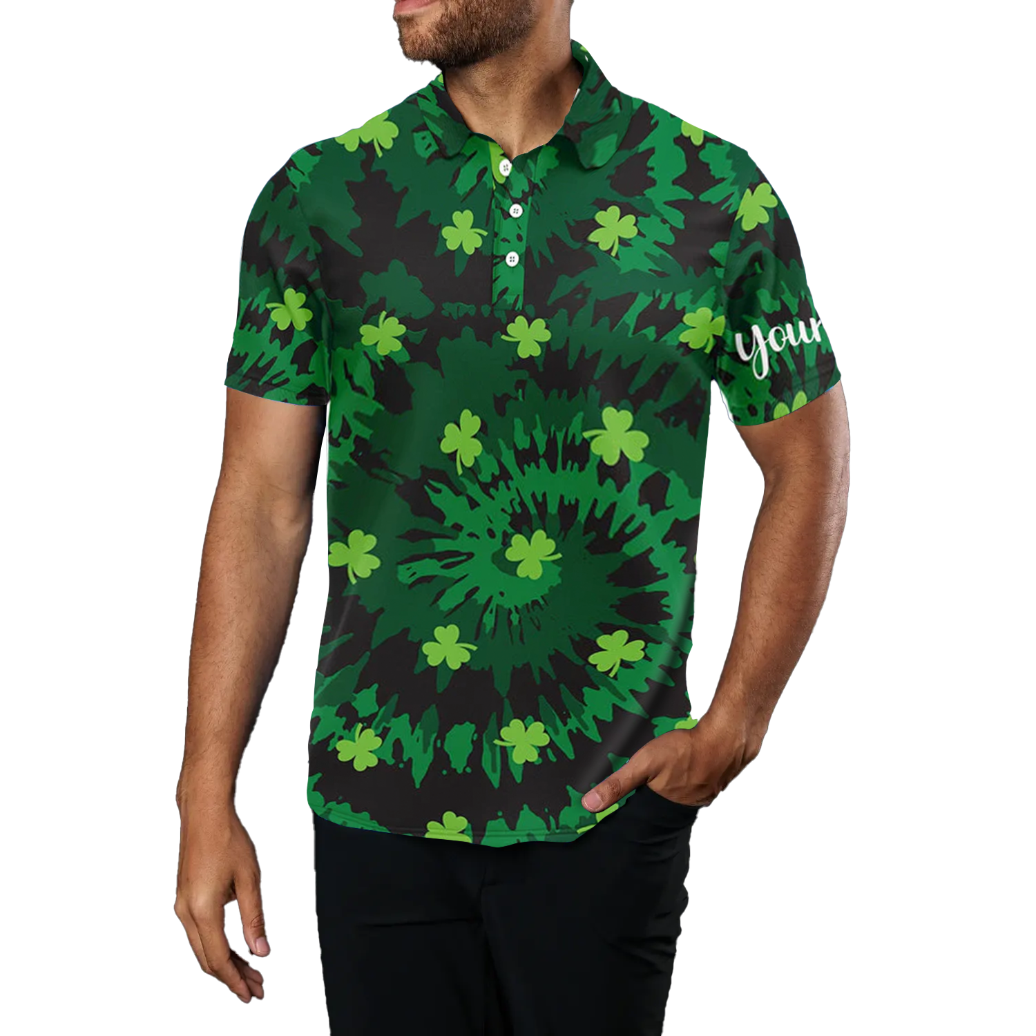 Herren Polo-Shirt mit Klee-Motiv für den St. Patrick's Day – Individuelles Golf Geschenk L1254
