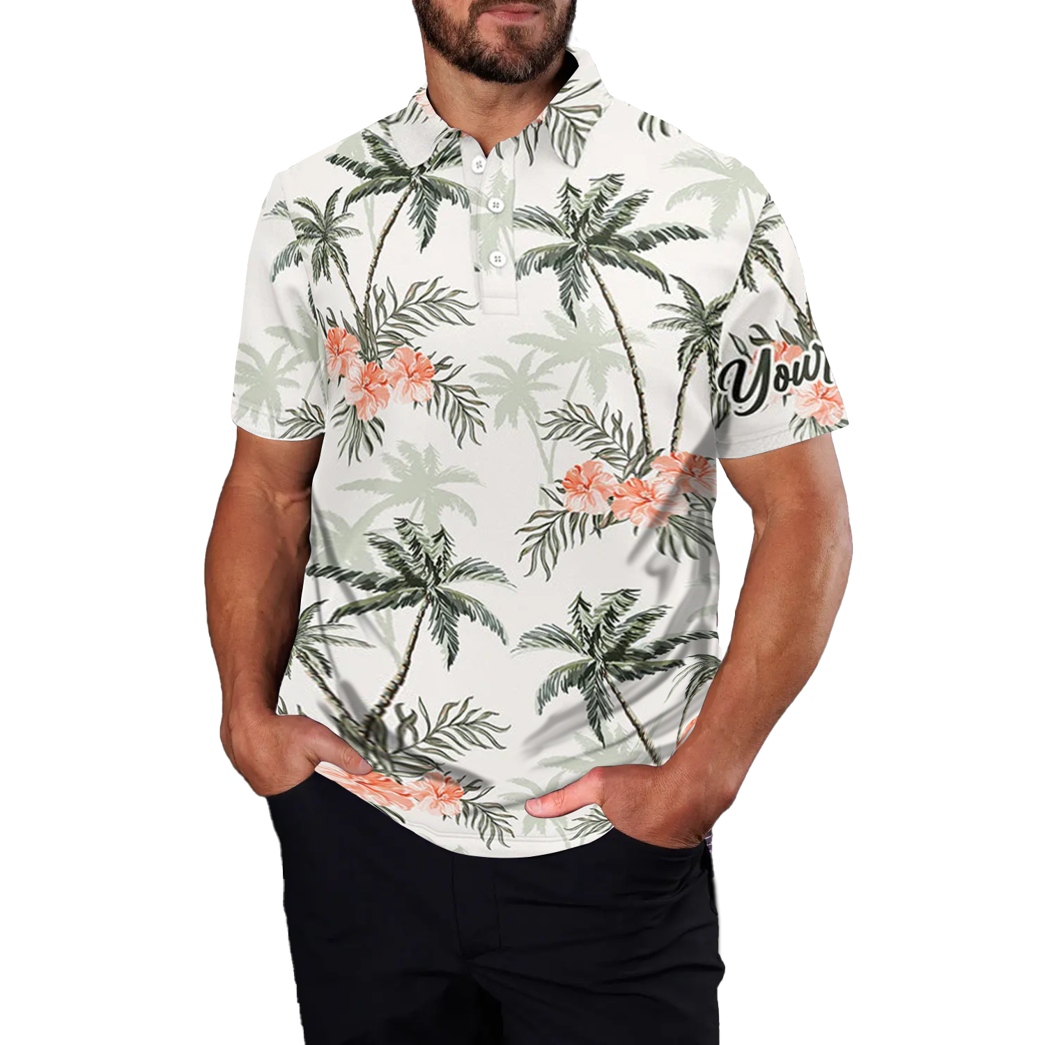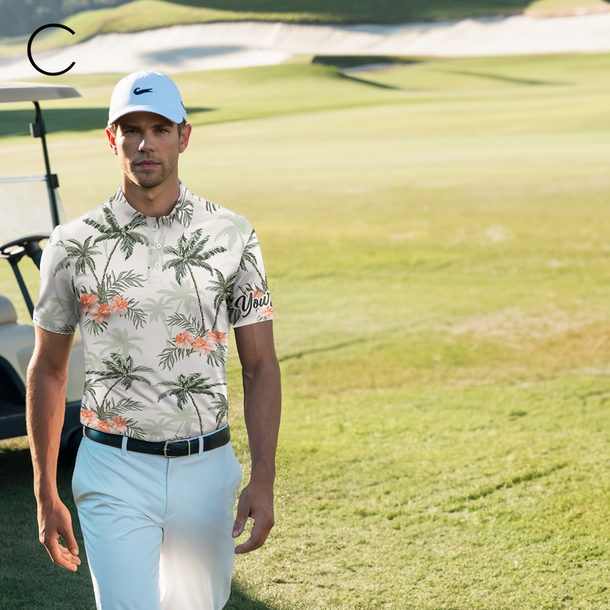 Herren Golf-Polo mit tropischem Palmenmuster – Stilvoll und Atmungsaktiv N5723