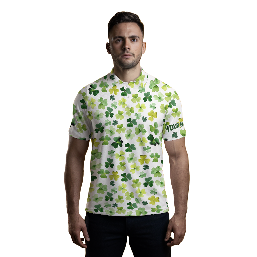 Personalisierbares Herren-Golf-Polo mit grünem Kleeblatt für den St. Patrick's Day L1259