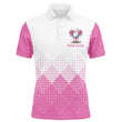 Herren Golfshirt mit individuellem Design in Weiß und Pink mit Rautenmuster N8310