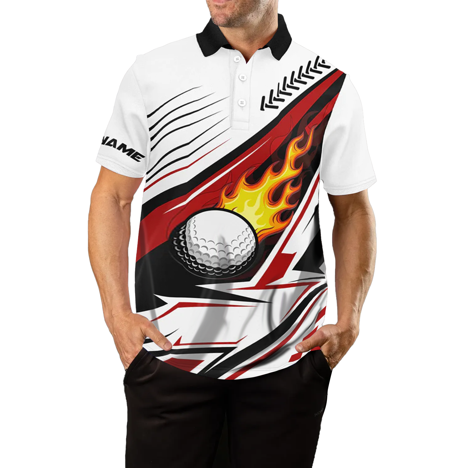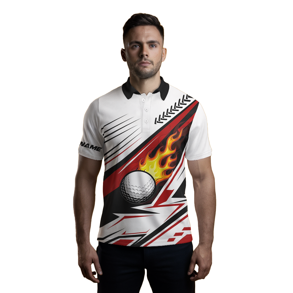 Herren Polo-Shirt mit Flammen-Motiv in Weiß – Individuelle Golfbekleidung & Einzigartige Golfgeschenke N7485