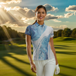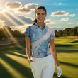 Blaues Camouflage Damen-Golfpoloshirt mit Weißem Golfball-Design – Ideale Golfoberteile für Damen, Perfektes Geschenk für Golferinnen N7512
