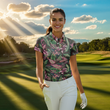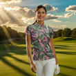 Damen Golf Poloshirt mit Blumenmuster und tropischen Blättern - Individuelle Team Golf Poloshirts N3692