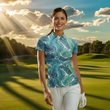 Türkise und Grüne Tropenblätter Damen Golf Polo - Individuelle Team Golf Poloshirts N3693