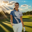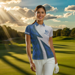 Personalisierte Damen-Golfpoloshirts mit blauem Rautenmuster und individueller Namensstickerei N7167