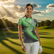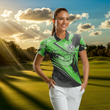 Damen Golf Polo Shirt in Individuellem Grün-Schwarz-Muster – Stilvolle Golfbekleidung für Damen N7050