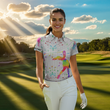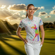 Personalisierte Golf-Polo-Bluse für Damen mit Individuellem Aquarell-Design eines Weißen Golfballs – Das Perfekte Golfgeschenk für Sie N3593