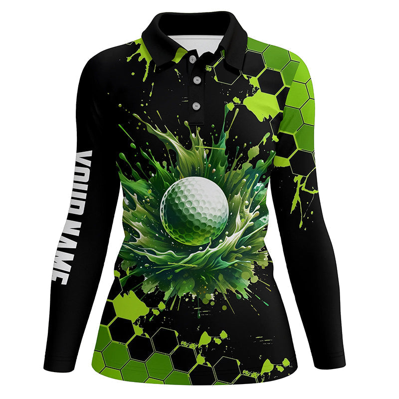 Individuelle Schwarz-Grün Aquarell Golf Poloshirts für Damen – Stilvolle Tops für Golf-Liebhaber N7292
