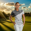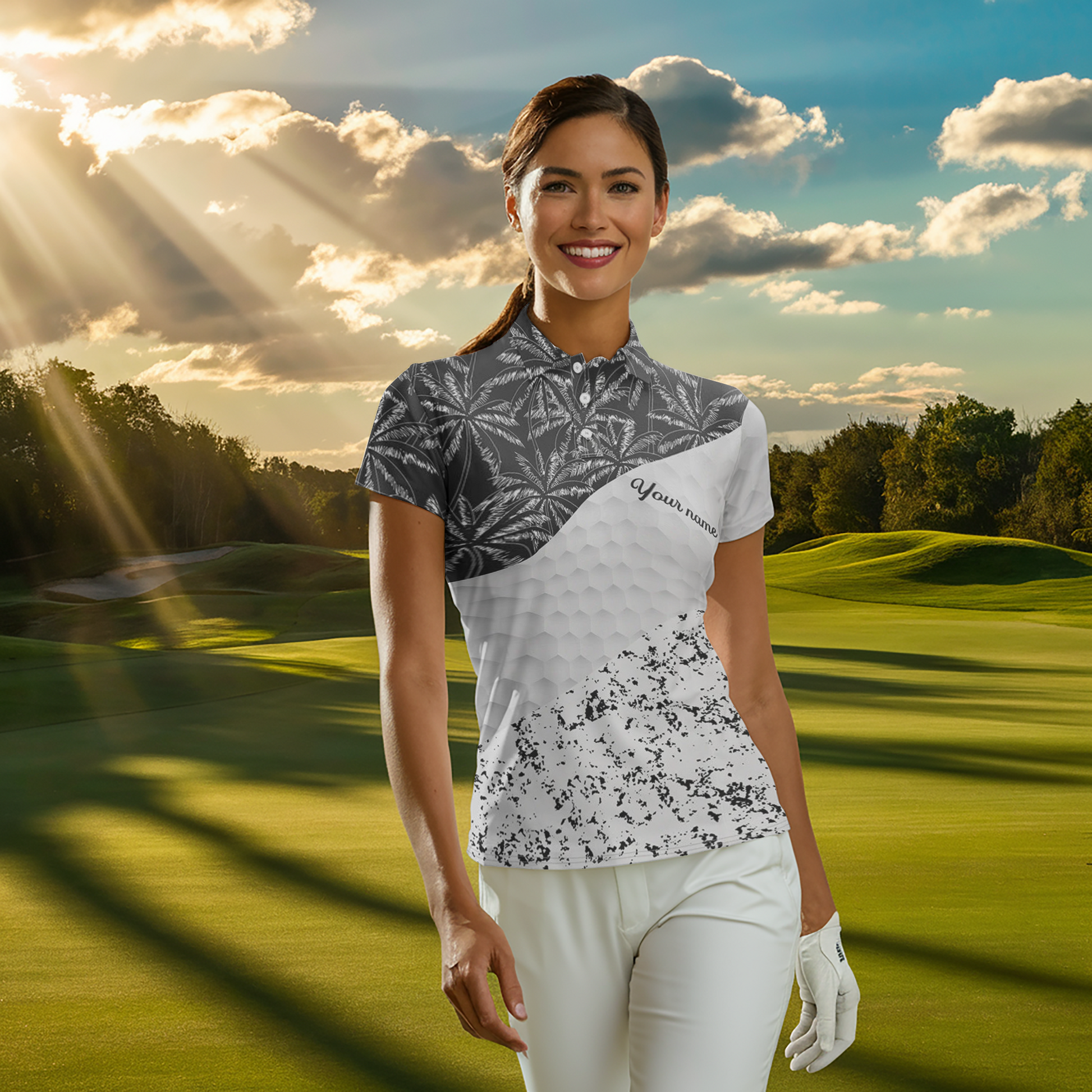 Individuelles Schwarzes Golf-Polo mit tropischem Palmenmotiv für Damen – Stilvolle Golfbekleidung N7116