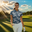 Damen Golf Polo-Shirt mit individuellem blauen Monstera-Blätter-Muster – Perfekt für das Golfteam N7298