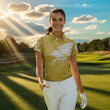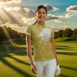 Personalisierte Damen Golf Poloshirt mit individuellem Namen | Golfplatz-Muster | Sonniges Gelb N7536