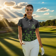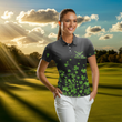 Personalisierte Damen Golf Polo mit schwarzem Muster – Grünes Kleeblatt für den St. Patrick's Day N7183