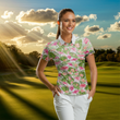 Individuelle Damen Golf Poloshirts mit Hibiskus- und Palmenmuster - Tropische Golfoberteile für Damen N7129