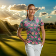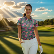 Personalisierte Damen Golf Poloshirts mit lebhaftem Hibiskus-Muster – Tropische Golfoberteile für Frauen N7133