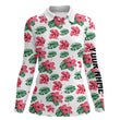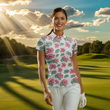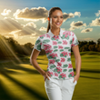 Damen Polo-Shirt mit personalisiertem Namen - Grünes tropisches Hibiskus-Muster für Golf-Enthusiastinnen N7131